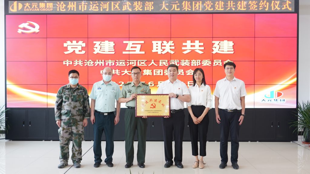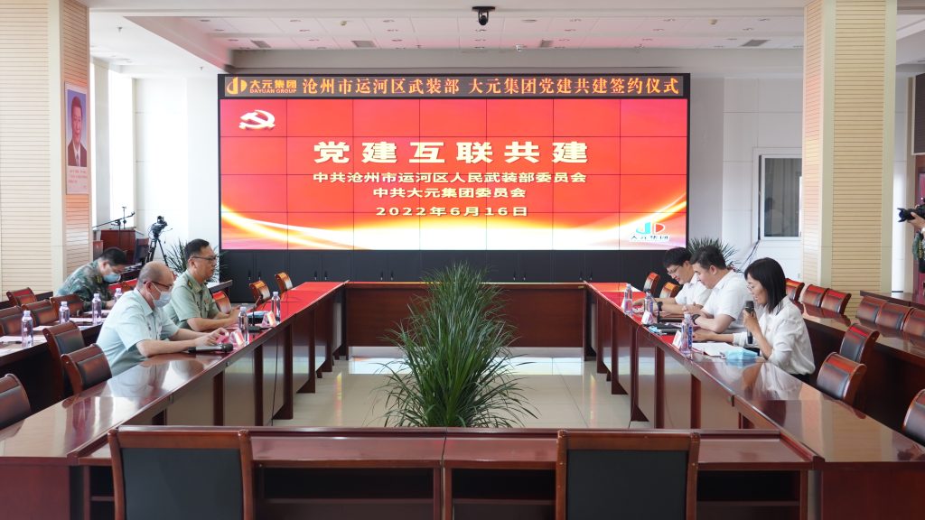 为进一步推进党建互联共建、党建引领,全面深化企业合作、资源共享、互利共赢,6月16日下午,大元集团、运河区人民武装部“党建互联共建”签约仪式在集团15楼会议室顺利举行。运河区人武部政治委员纪功、保障科科长唐浩及各乡镇武装部部长莅临大元集团,大元集团党委副书记于宙、党群文化管理中心总监、集团总部机关党支部书记王金英、人力资源、综合管理中心总监齐平安热情接待并参加本次签约仪式。