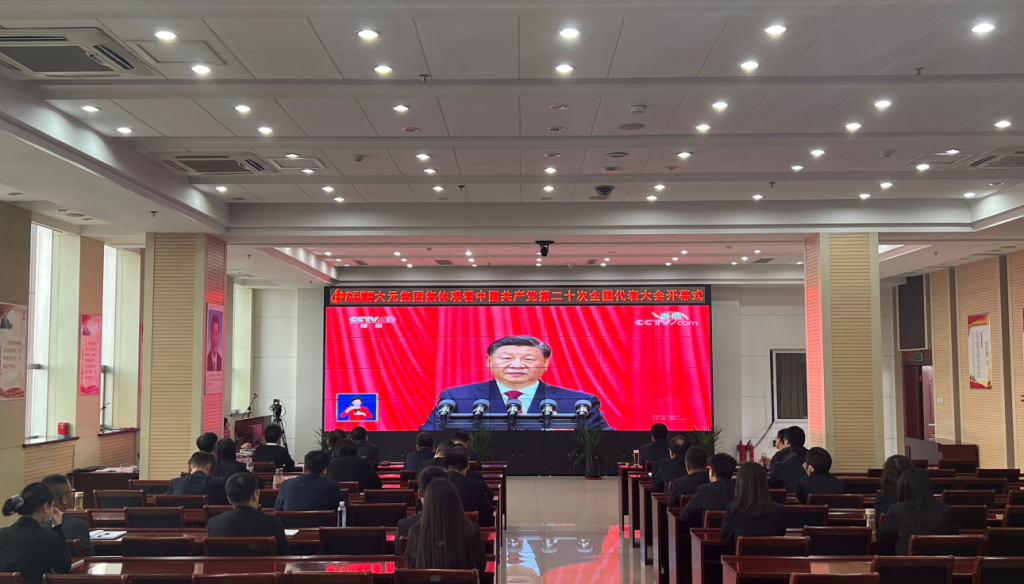 2022年10月16日上午10时,举世瞩目的中国共产党第二十次全国代表大会在北京隆重开幕。大元集团党委高度重视,组织各层级党员干部员工共200余场次近3000人,集中收听收看党的二十大开幕会,聆听习近平总书记作重要报告。