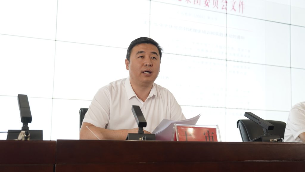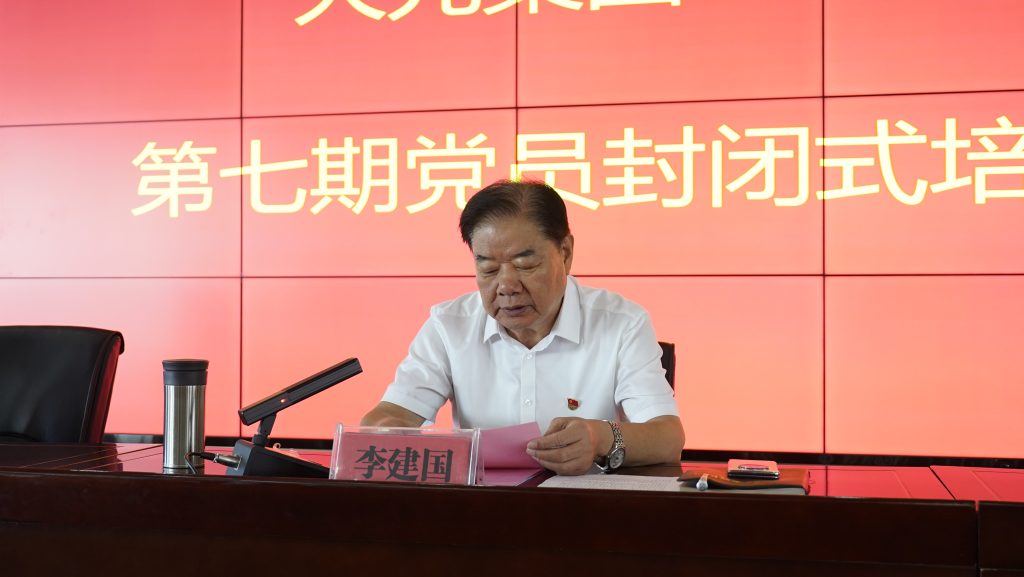 大元集团党委副书记于宙传达《关于加强全体党员封闭培训和实践活动的通知》和《关于成立大元集团2023年第七期党员培训班临时党支部的决定》。