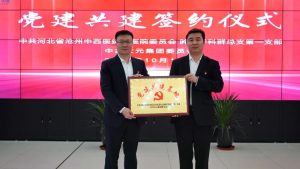 10月12日下午,大元集团党建共建第100家单位签约仪式圆满完成。本次共建由大元六建与河北省沧州中西医结合医院开展“党建互联共建”。 河北省沧州中西医结合医院副院长、肿瘤学科群总支书记刘杰,第一支部书记袁香坤,组织委员刘非,纪检委员苗珺珺,党小组组长史立中、张萌、张振山、田丹丹一行到场参会,大元集团党委副书记于宙,大元集团总部党支部书记、党群文化中心总监王金英,大元六建党支部书记杨海明,综合部部长